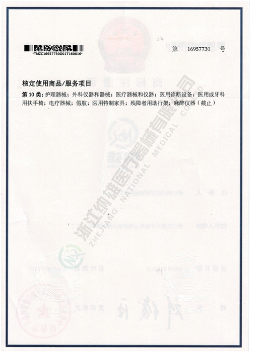 浙江納雄監護儀注冊證
