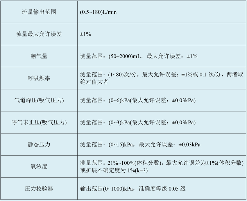 滿足JJF 1234-2018《呼吸機(jī)校準(zhǔn)規(guī)范》、JJF1997-2022《無(wú)創(chuàng)呼吸機(jī)校準(zhǔn)規(guī)范》、JJF 1998-2022《急救和轉(zhuǎn)運(yùn)呼吸機(jī)校準(zhǔn)規(guī)范》中對(duì)呼吸機(jī)校準(zhǔn)設(shè)備的要求,可對(duì)不同廠家生產(chǎn)的各種型號(hào)呼吸機(jī)測(cè)試儀進(jìn)行校準(zhǔn),滿足國(guó)家計(jì)量檢定系統(tǒng)量值傳遞要求,滿足社會(huì)公用計(jì)量標(biāo)準(zhǔn)的建標(biāo)要求。