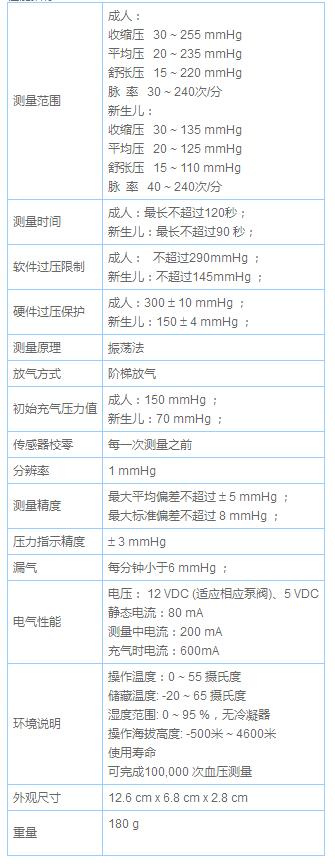 功能: 1.數(shù)值計算:計算得到 收縮壓,平均壓,舒張壓,脈率 。 2.自動測量模式:1,2,3,4,5,10,15,30,60,90 分鐘 。 3.手動測量模式:用戶根據(jù)需要,可手動啟動一次測量。 4.校準模式:連續(xù)提供袖帶壓力值 5.測量單位:mmHg 6.串口通訊 :RS232 口,TTL電平,4800 波特率 7.自檢 :復位后提供自檢功能